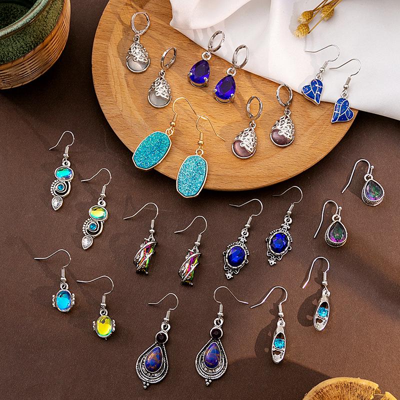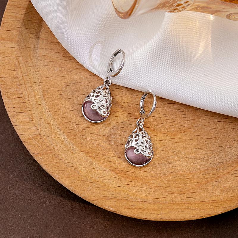 Ретро Этнические Серьги-подвески Капля воды Кошачий глаз Сердце любви