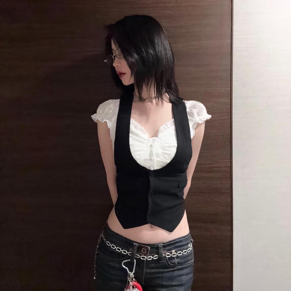 Винтажный преппи двухкомпонентный жилет в стиле пэчворк: Стильный и сексуальный кроп-топ