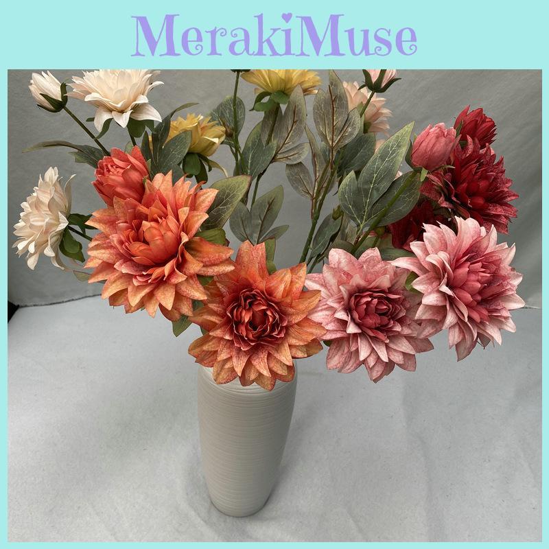 Artificial 3 Head Dahlia Chrysanthemum Bouquet For Wedding Floral Home Decor