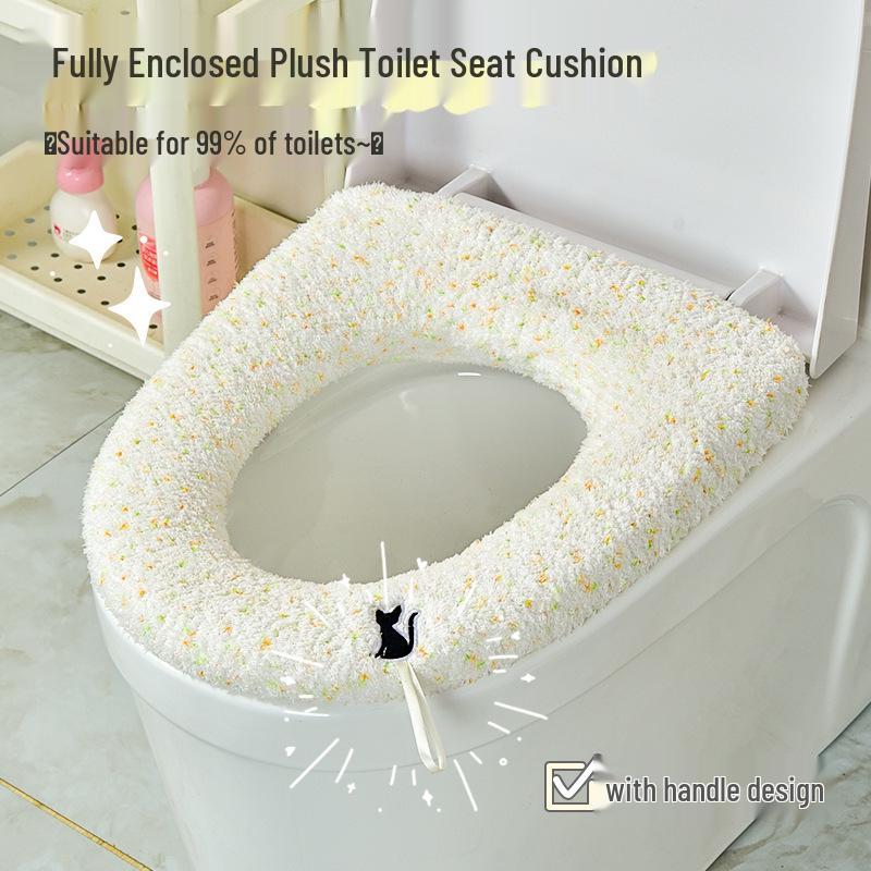 Мягкая бархатная накладка на сиденье унитаза большого размера с ручкой - Моющаяся, осенне-зимняя подушка