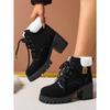 Зимние новые модные ботинки на толстой подошве из бархата с утолщением женские большого размера на шнуровке теплые на толстом каблуке ботинки Мартин