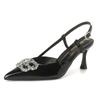 2025 новые однословные туфли-лодочки на высоком каблуке с двойной пряжкой в стразах, телесная лакированная кожа, с острым носком, босоножки на тонком каблуке, босоножки с закрытым носком