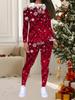 Женский рождественский костюм-двойка с принтом: Топ с длинным рукавом и круглым вырезом и брюки, праздничный лимитированный повседневный костюм для вечеринки в подарок