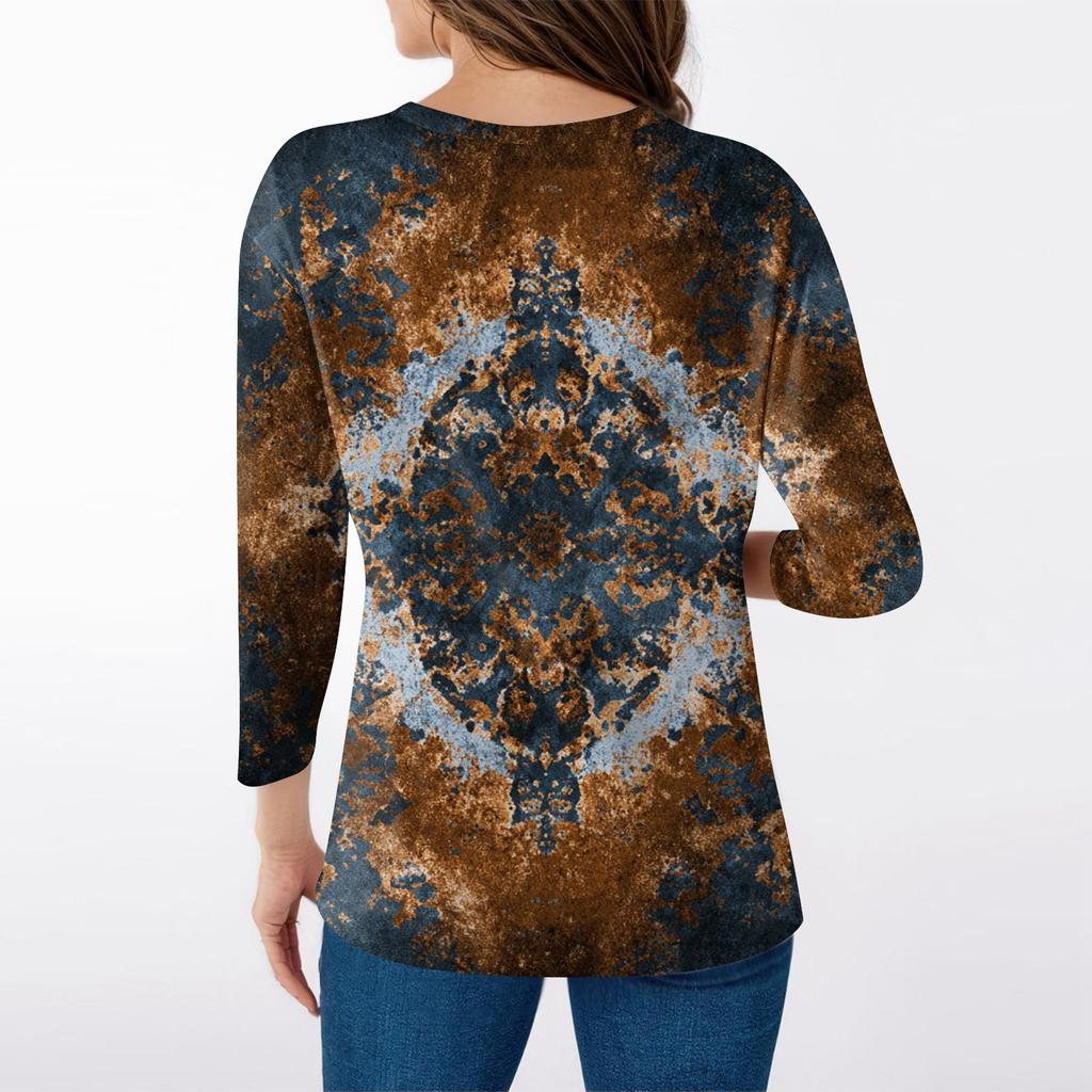Женская футболка с принтом, рукав 3/4, повседневная мода на выходные, базовый топ с V-образным вырезом