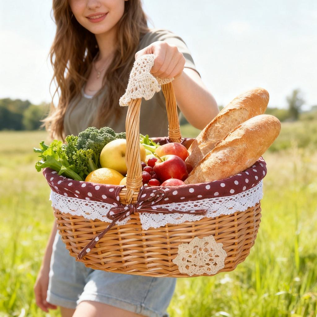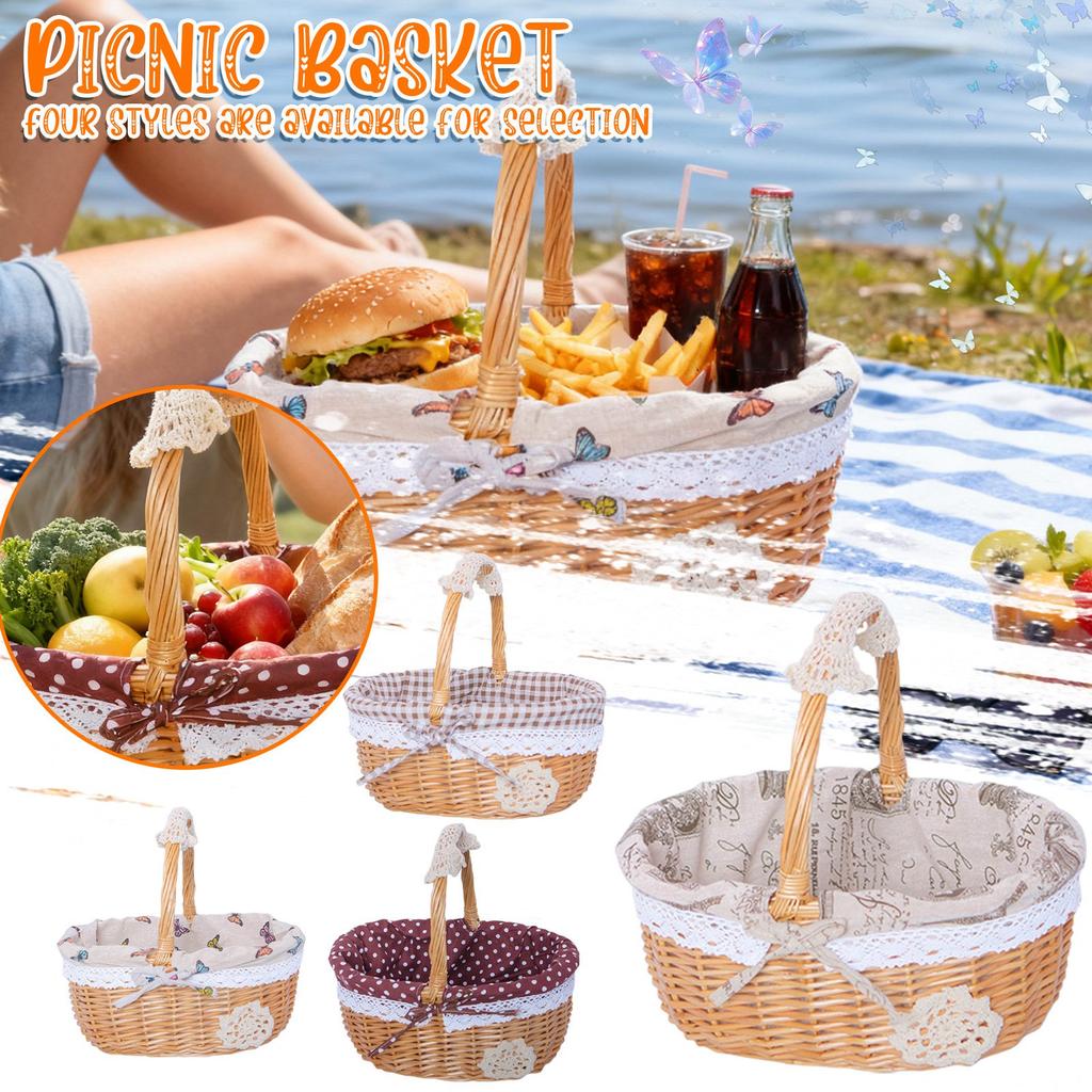 Плетеная корзина, Корзина для хранения ручной работы с ручками и льняной подкладкой, Многофункциональный контейнер для хлеба и фруктов, Идеально подходит для семейных посиделок
