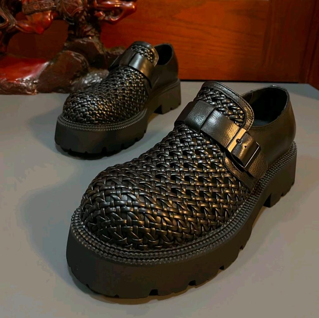 Летние мужские сандалии ручной работы, дышащие, деловые, повседневные, кожаные туфли с большой головой, полые туфли на внутренней платформе