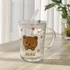Милая мультяшная стеклянная чашка для молока с крышкой и ложкой, персонализированный подарок.