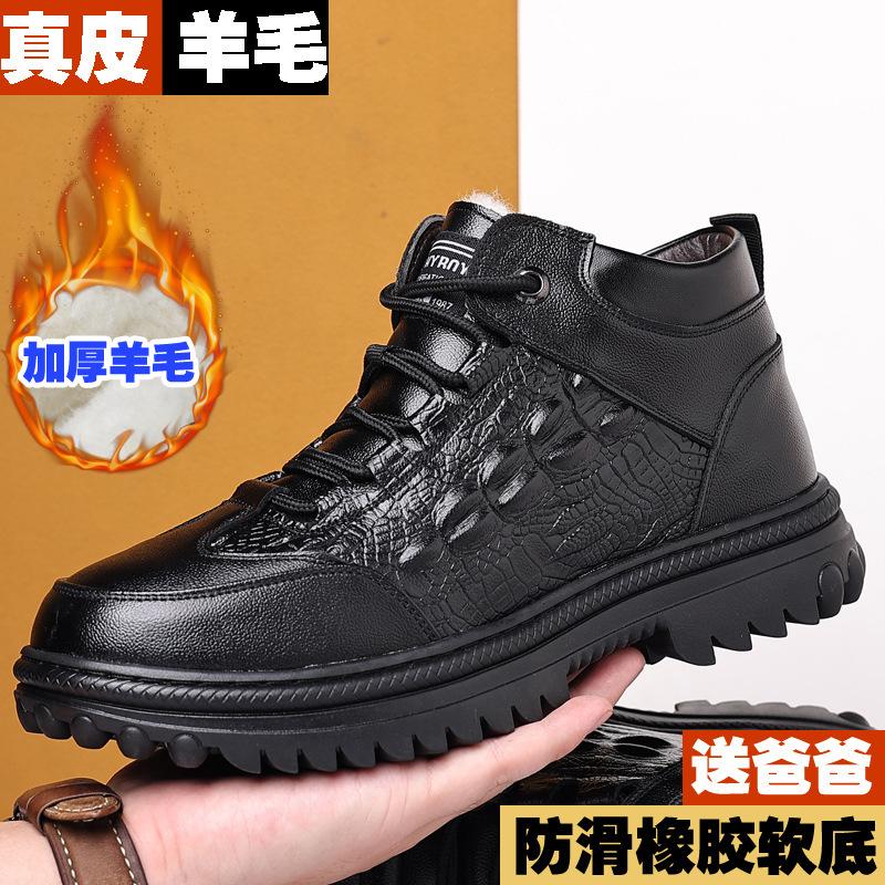 Мужские ботинки с крокодиловым узором зима 2025 новые хлопковые ботинки мужские кожаные на шнуровке бархатные теплые повседневные кожаные ботинки хайтопы