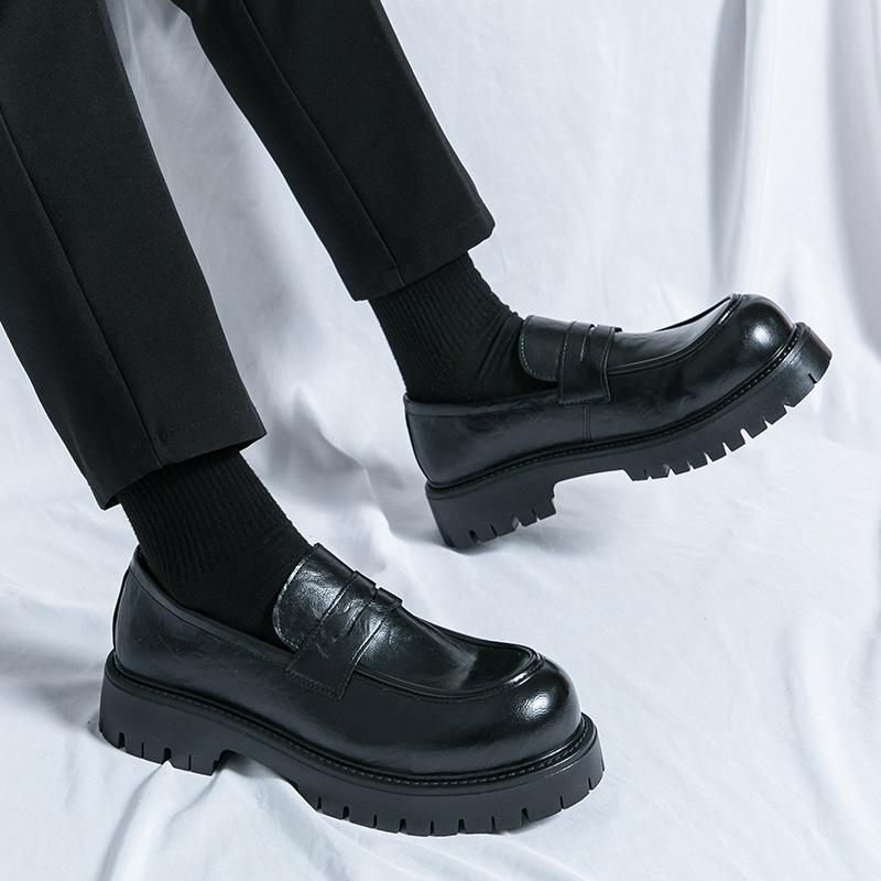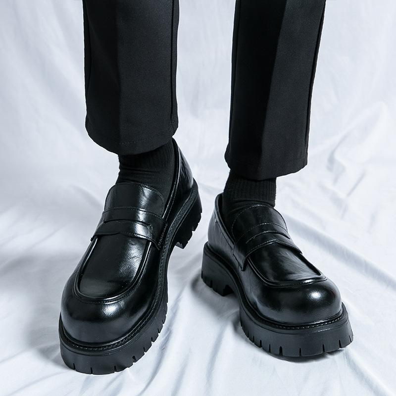 Летние кожаные туфли мужские на толстой подошве в британском стиле деловые повседневные туфли с одной педалью модные туфли на толстой подошве увеличивающие ногу свадебные туфли