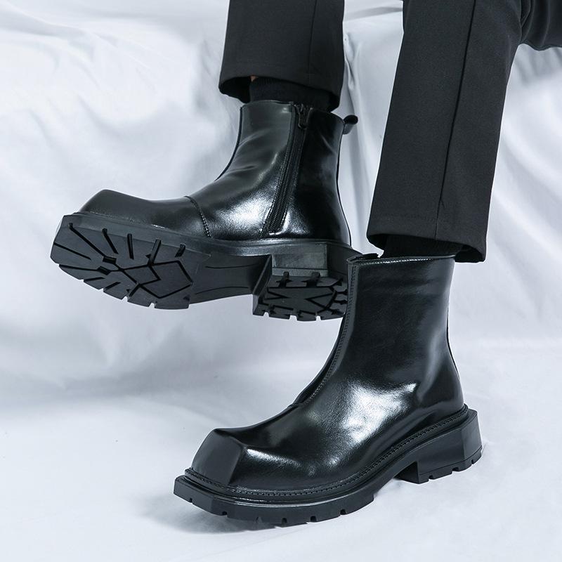 Осенне-зимние ботинки челси мужские нишевые с квадратным носком ботинки мартин модные кожаные ботинки на толстой подошве увеличивающие рост трендовые ботильоны
