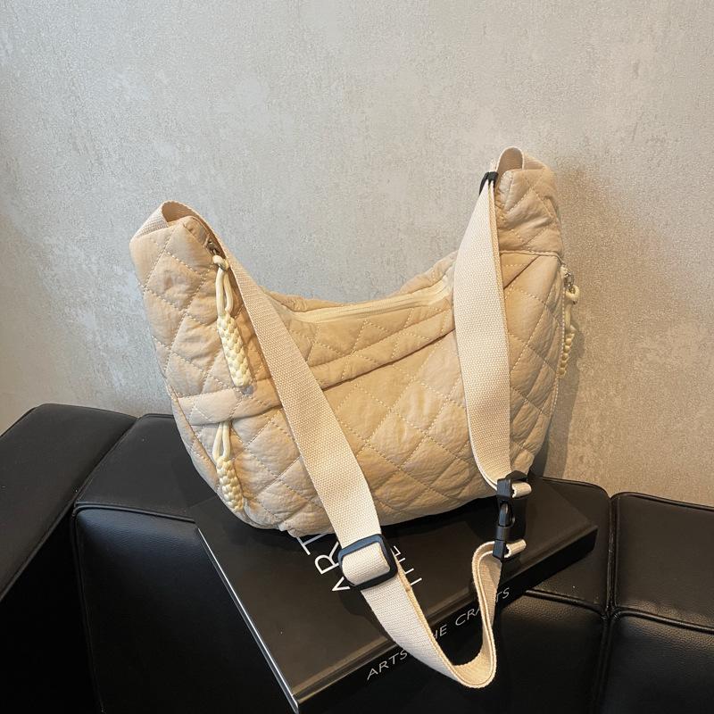 Осень и зима нейлоновая ткань клетка хлопковая одежда сумка 2025 новая однотонная текстура универсальная повседневная спортивная сумка-пельмень сумка через плечо