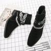 Европейская и американская мода короткие ботинки мужские большого размера западные ковбойские кожаные ботинки черная пряжка высокие остроносые кожаные туфли