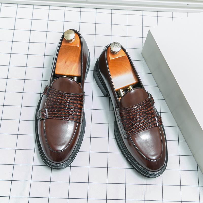 2025 весна и осень новая большая размерная обувь монки мужская с двойной пряжкой кожаная обувь размер 46 деловая нарядная мужская обувь