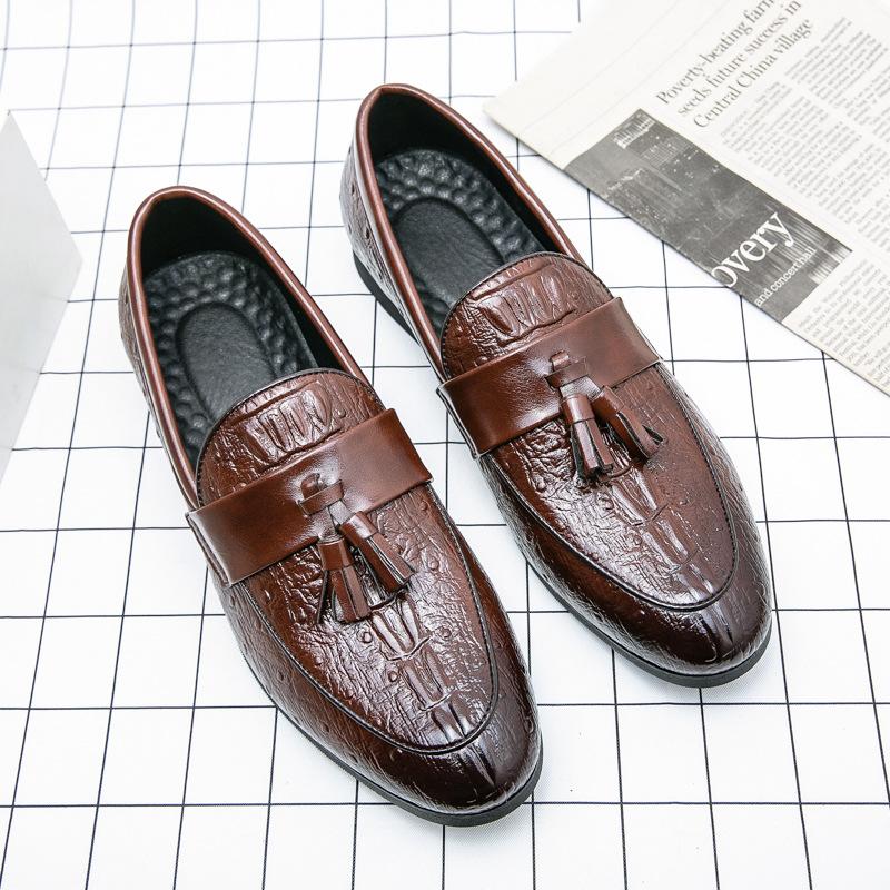 Мужская обувь большого размера новая повседневная кожаная обувь модная британский стиль лоферы на ногу на одной педали с бахромой маленькие кожаные туфли