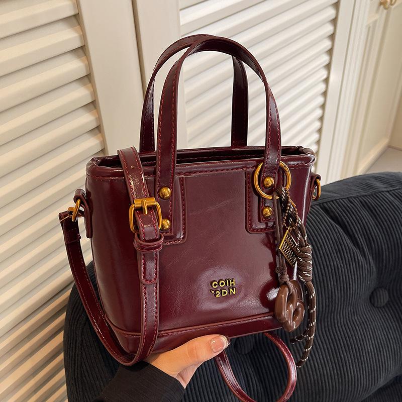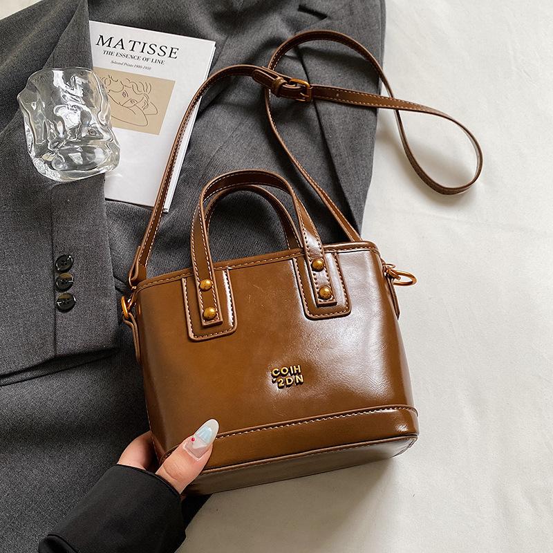 Винтажная нишевая модная сумка-ведро Maillard из вощеной кожи, высококлассная, легкая, роскошная, универсальная сумка-мессенджер для通勤 для женщин