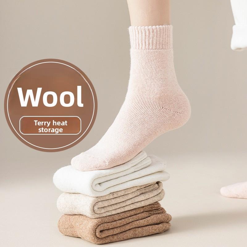 Женские зимние утолщенные флисовые шерстяные носки для женщин, носки до середины икры для тепла, однотонные простые флисовые женские носки для осени и зимы