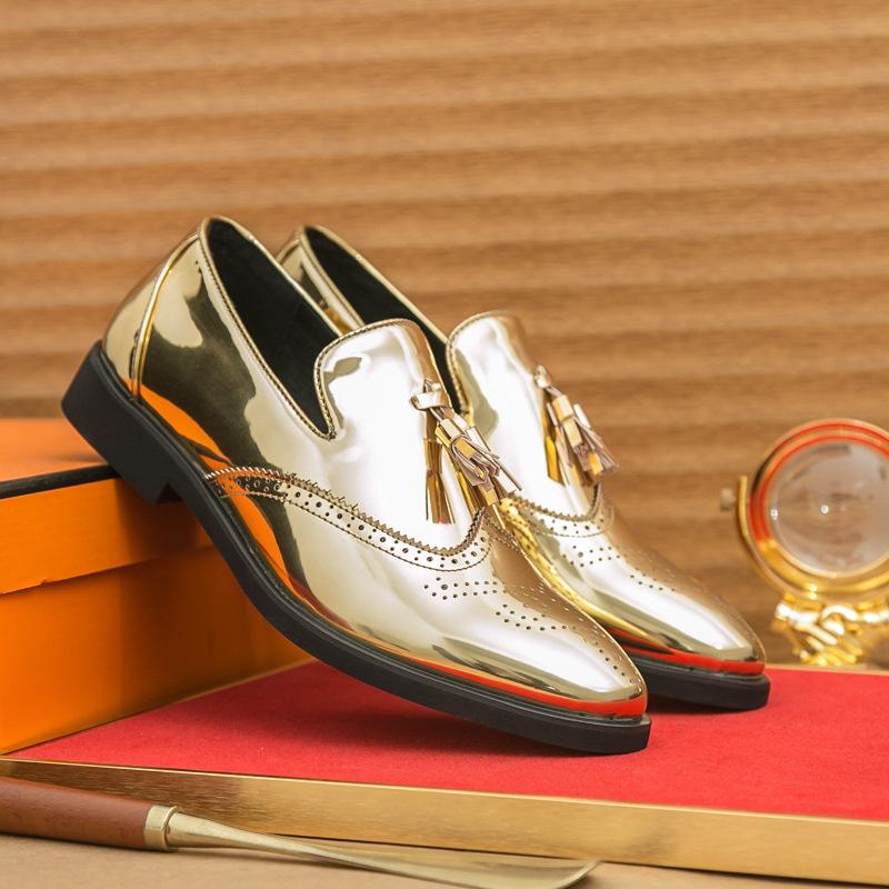 Мужская обувь большого размера новая глянцевая кожаная обувь модная мужская повседневная кожаная обувь трендовая резная обувь с бахромой