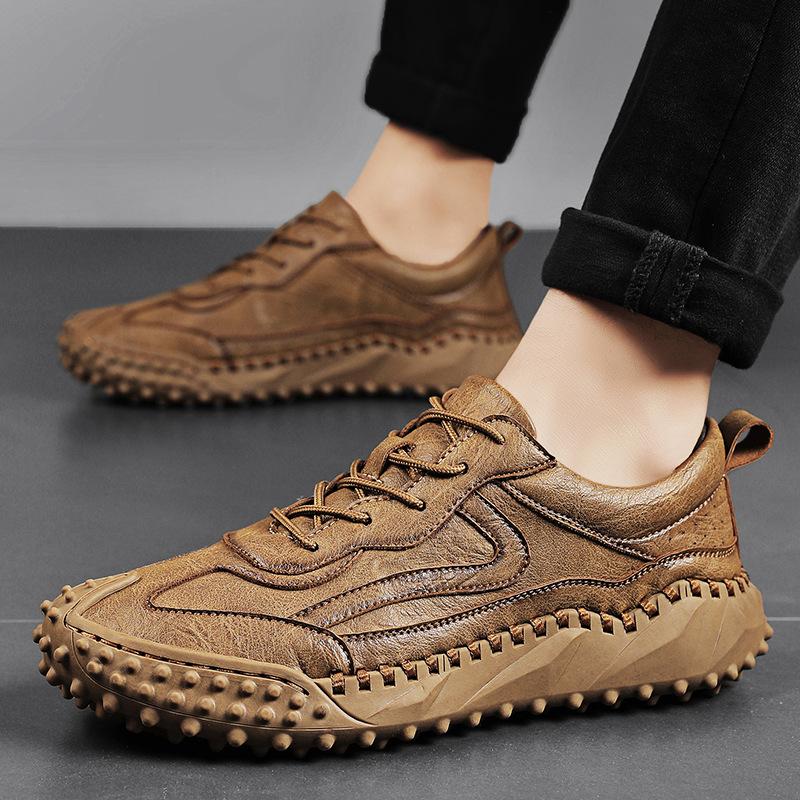 2025 большие размеры осень новые мужские повседневные туфли для отдыха на открытом воздухе модные кожаные туфли ручной работы на шнуровке шапочки мужские туфли