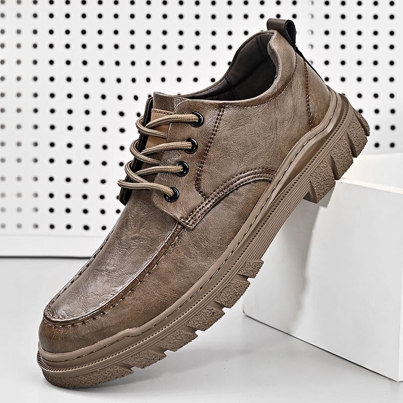 Повседневная кожаная мужская обувь 2025 осень новая мягкая подошва нескользящая трендовая универсальная дышащая ретро низкая верх обувь для инструментов мужская обувь