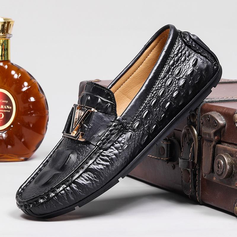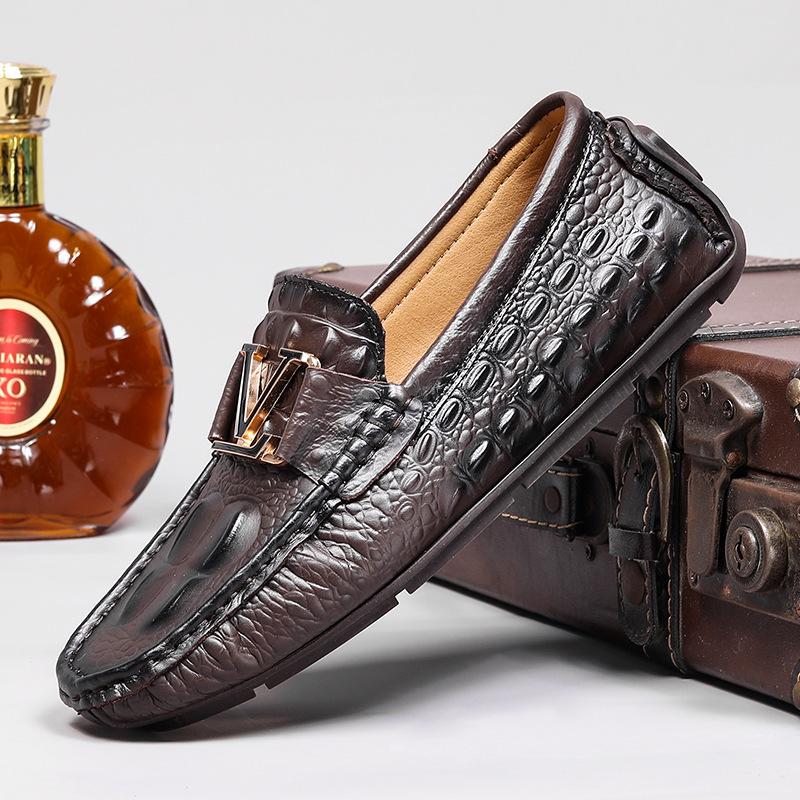 Первый слой коровьей кожи с тиснением под крокодила, туфли-бини большого размера, ленивые туфли для вождения, британская повседневная обувь, натуральная кожа, коровья кожа, мужская обувь