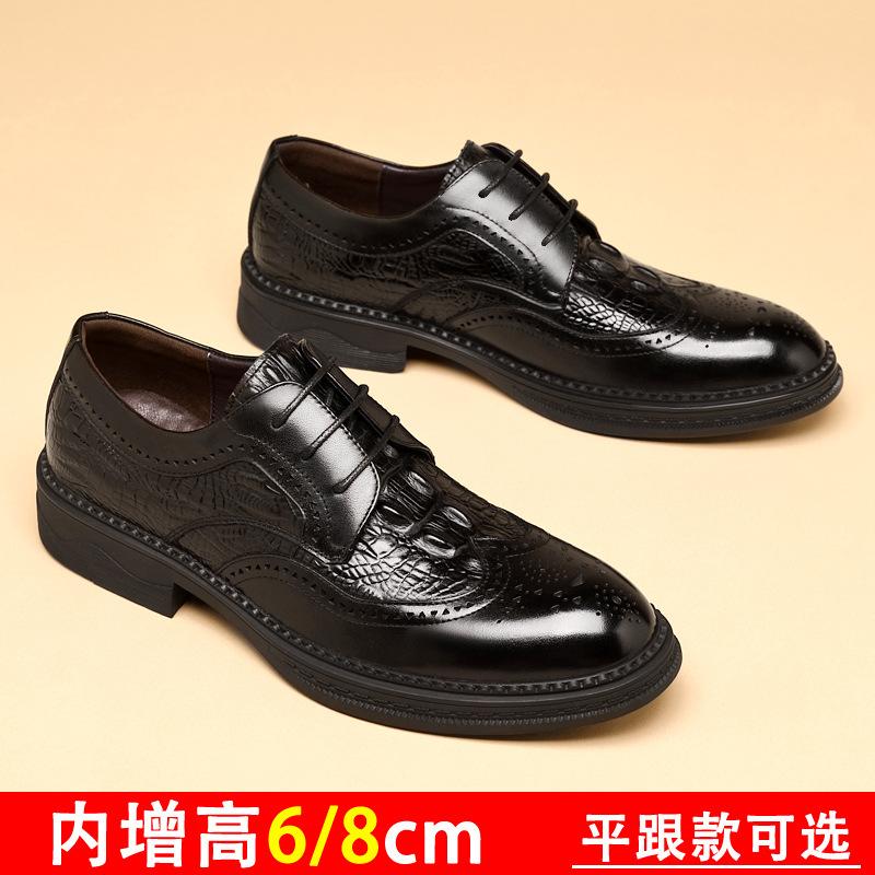 Брок кожаная обувь мужская с внутренним увеличением высоты на 8 см, новая осенняя кожаная британская гравированная обувь на платформе, деловая повседневная обувь