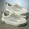 Полые белые мужские летние туфли 2025 новая дышащая сетка низкий верх повседневные туфли мягкая подошва удобные шнуровка кеды