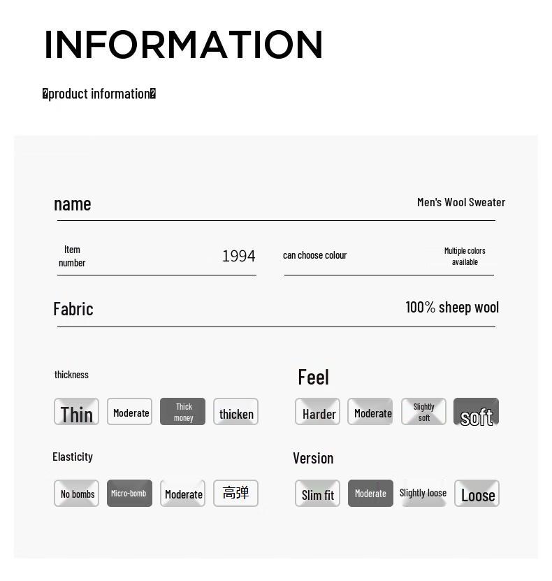 DAISHU Мужской свитер с высоким воротником из 100% шерсти