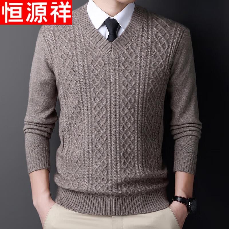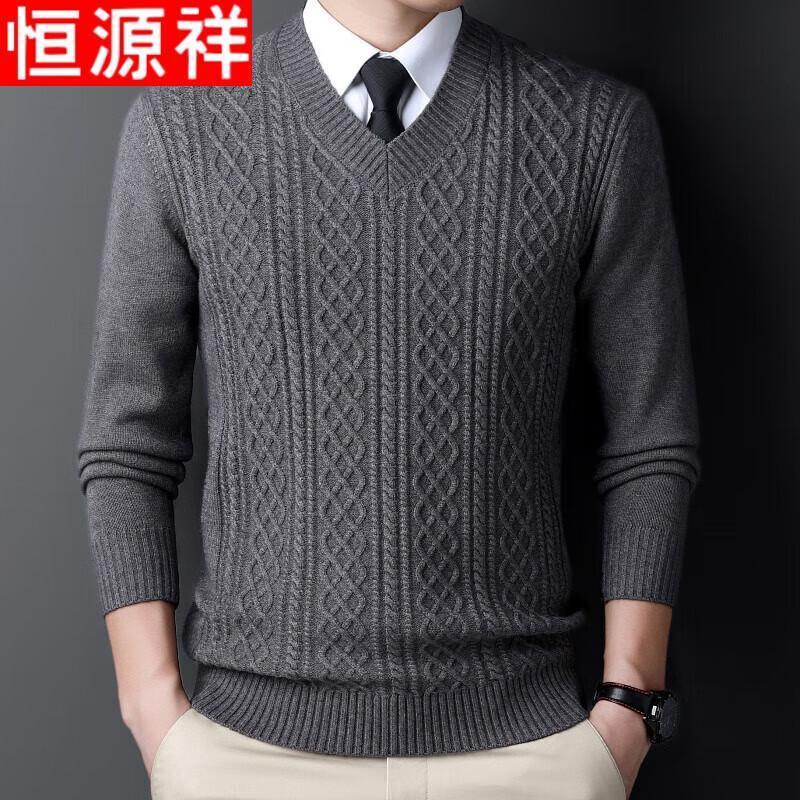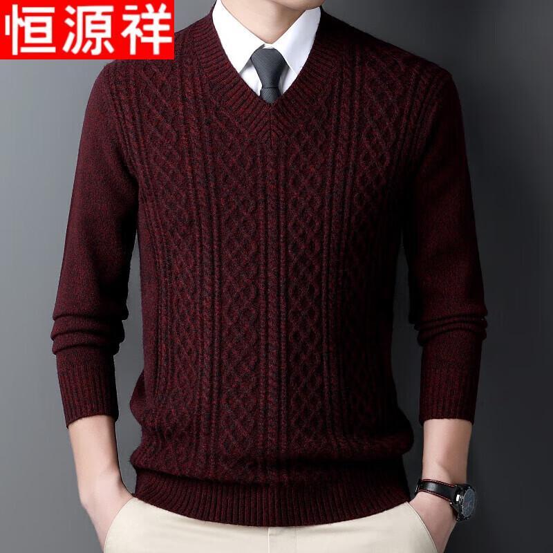 Hengyuanxiang Мужской толстый вязаный свитер с V-образным вырезом