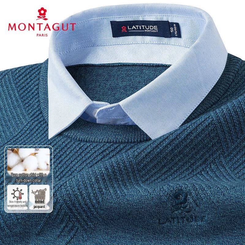 MONTAGUT Мужской трикотажный свитер поло с воротником, в стиле бизнес-кэжуал, из двух частей