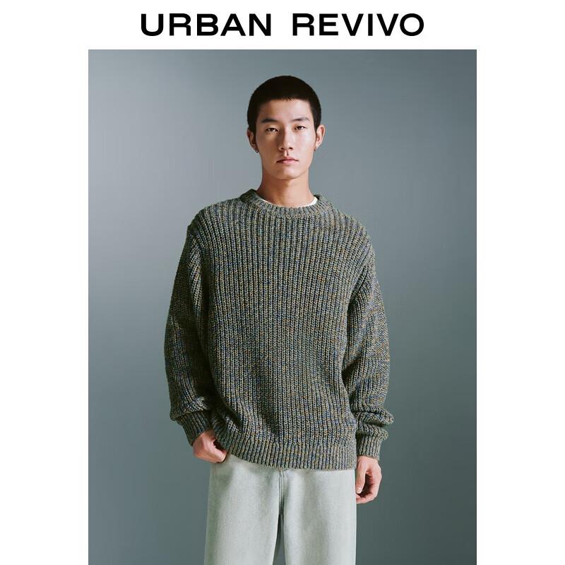 Мужской свитер UR в стиле ретро из меланжевого трикотажа с круглым вырезом