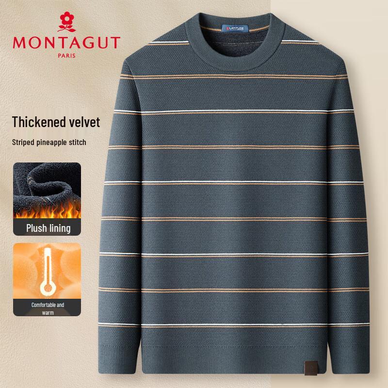 Мужской термо-свитер MONTAGUT с флисовой подкладкой, полосатый, с круглым вырезом
