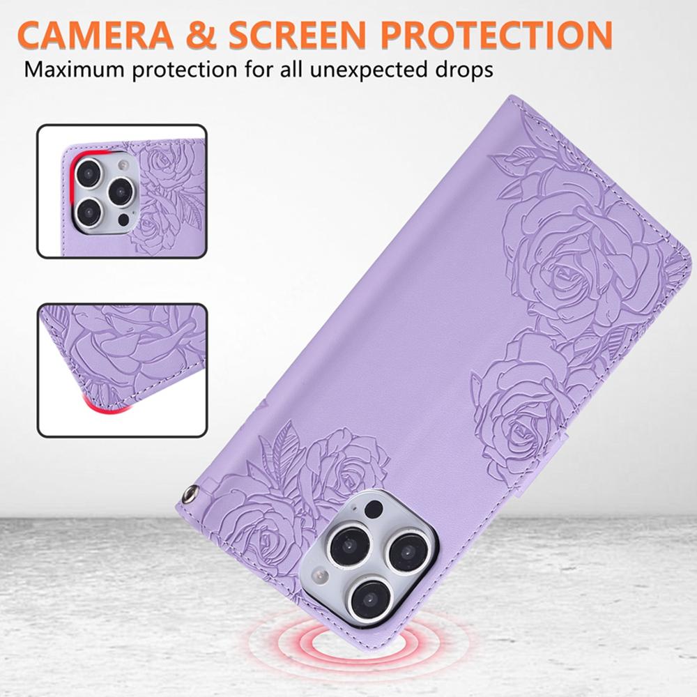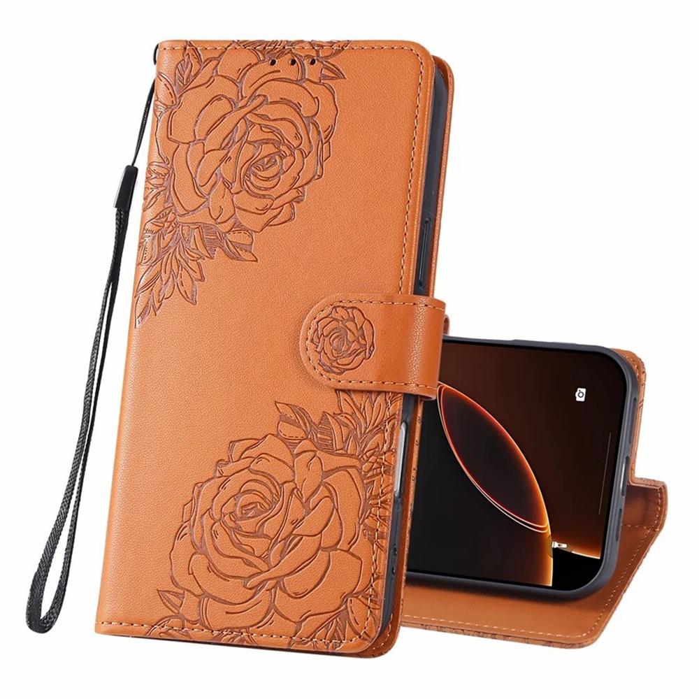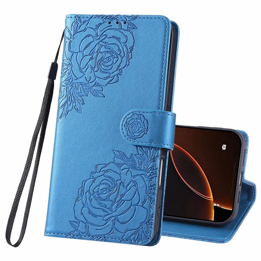 Чехол для телефона с тиснением в виде розы для iPhone, Samsung, Redmi, Google, VIVO, OPPO, чехол-кошелек из искусственной кожи с отделениями для карт и ремешком