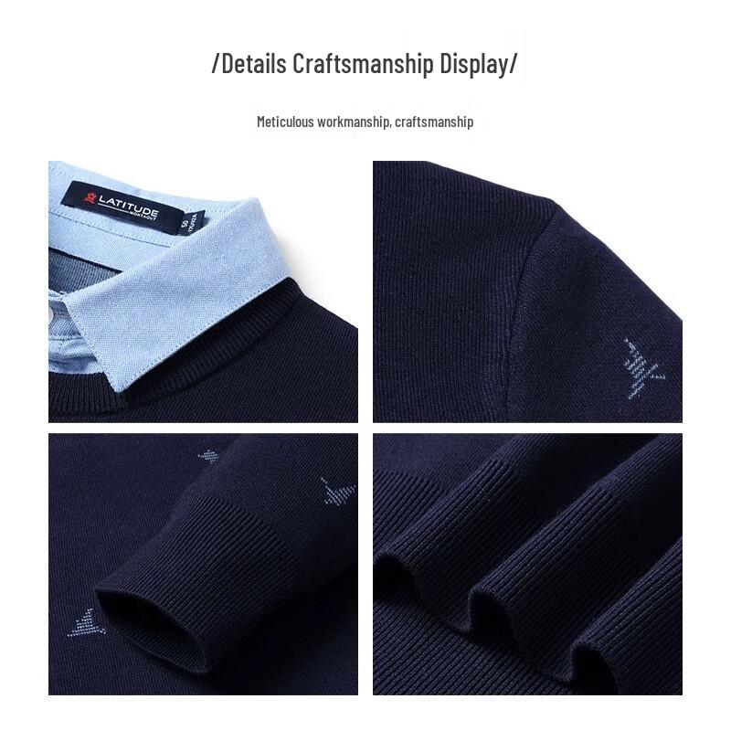 MONTAGUT Men's Faux Two-Piece Jacquard Knit Pullover