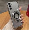 Роскошный чехол для беспроводной зарядки MagSafe для iPhone 11 12 13 14 15 Pro Max Plus с блестками, магнитным кольцом-подставкой, прозрачная крышка