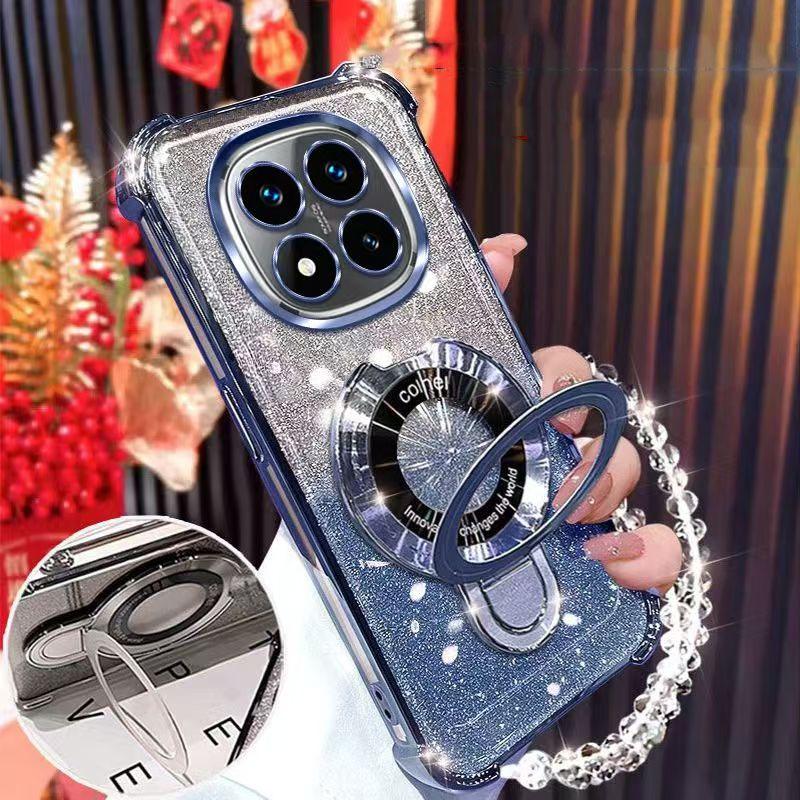 Для Xiaomi Redmi Note 14 13 12 11 10 9 Pro 14C 12C 13C 10C 9C 9T Противоударный чехол Блестящий Магнитный держатель-подставка Чехол-браслет