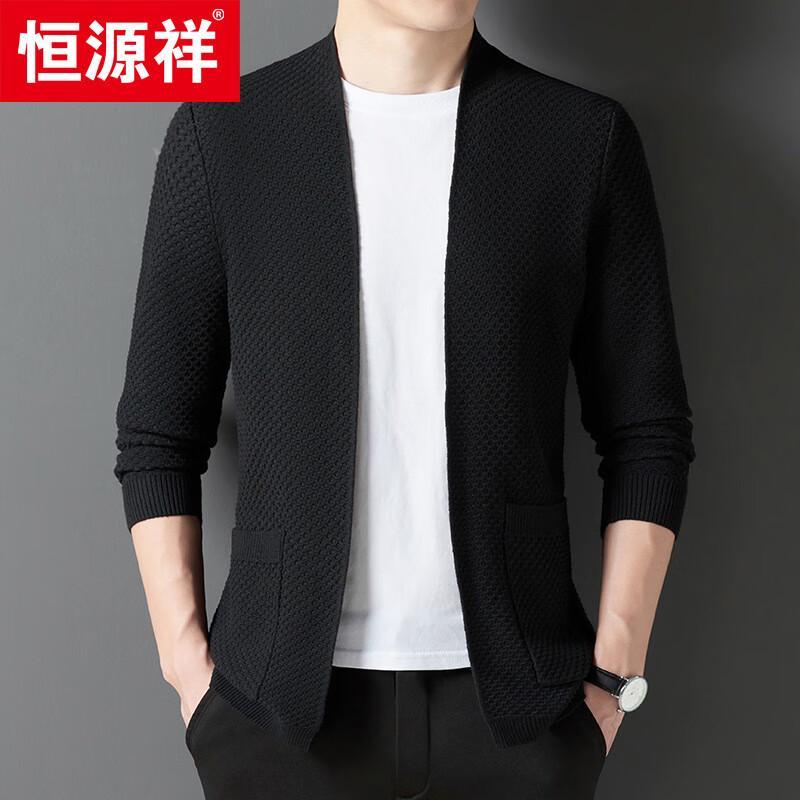 Hengyuanxiang Men's V-Neck Thick-Knit Business Casual Cardigan