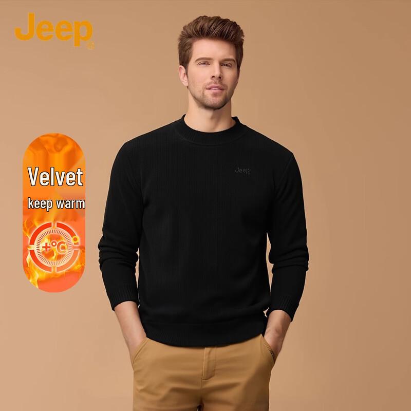 Jeep Мужской толстый флисовый свитер из шенилла с вышивкой, круглый вырез