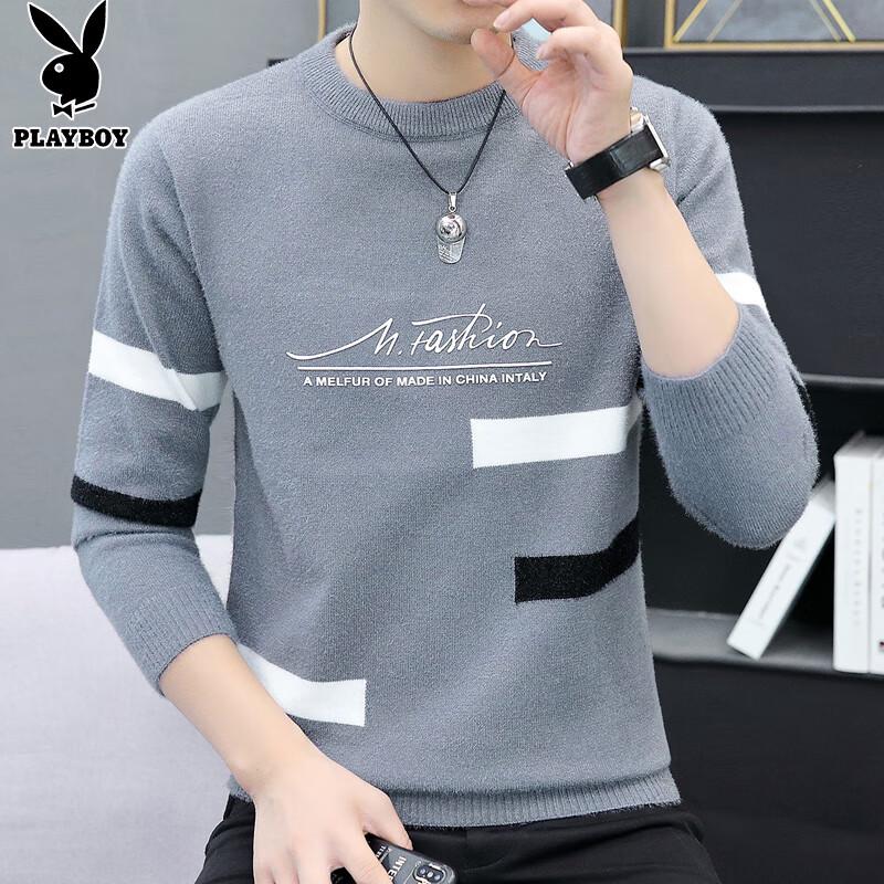 PLAYBOY Men's Winter Warm Mink Velvet Knit Pullover Sweater