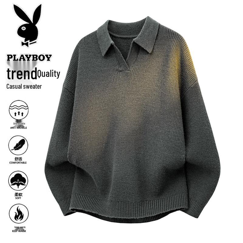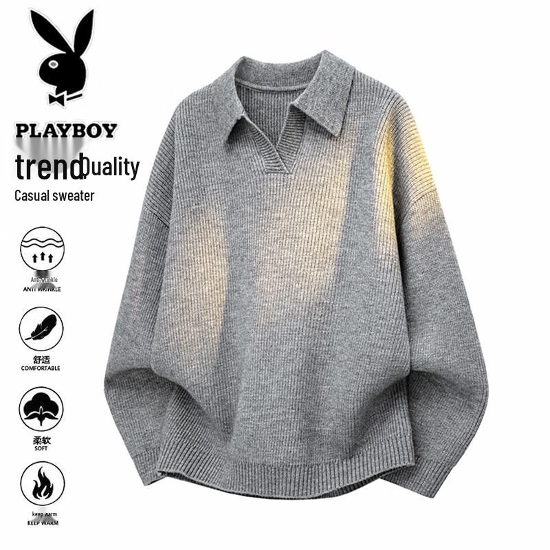 PLAYBOY Men's Turn-down Collar Pullover Sweater
