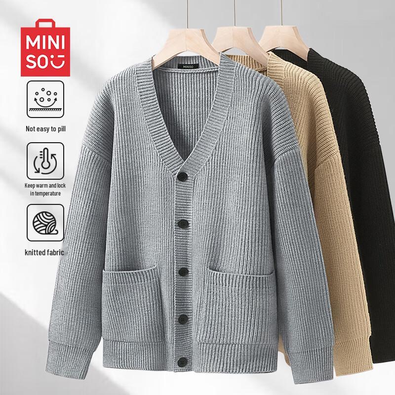 MINISO Men's Loose Fit V-Neck Cardigan Sweater — купить товар онлайн с бесплатной доставкой по всему миру!