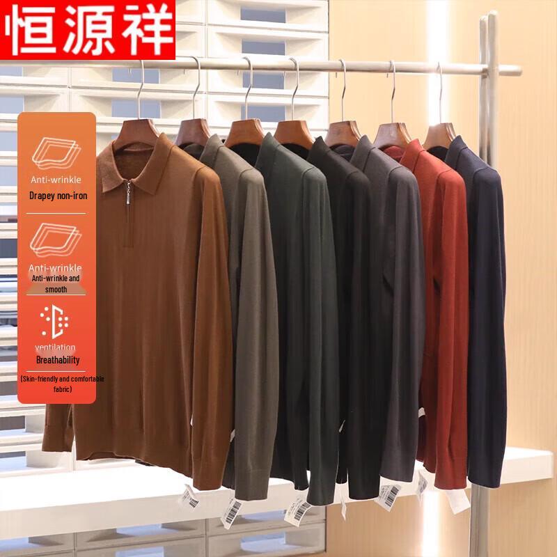 Hengyuanxiang Men's Half-Zip Mulberry Silk Wool Blend Knit Sweater