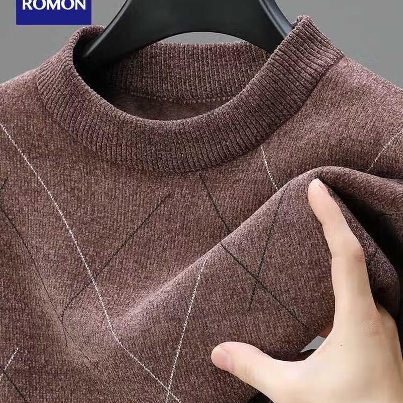 Мужской вязаный свитер Luomeng с плюшевой подкладкой и круглым вырезом