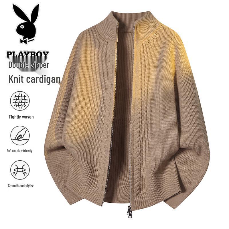PLAYBOY Мужской осенне-зимний вязаный кардиган свободного кроя на двойной молнии