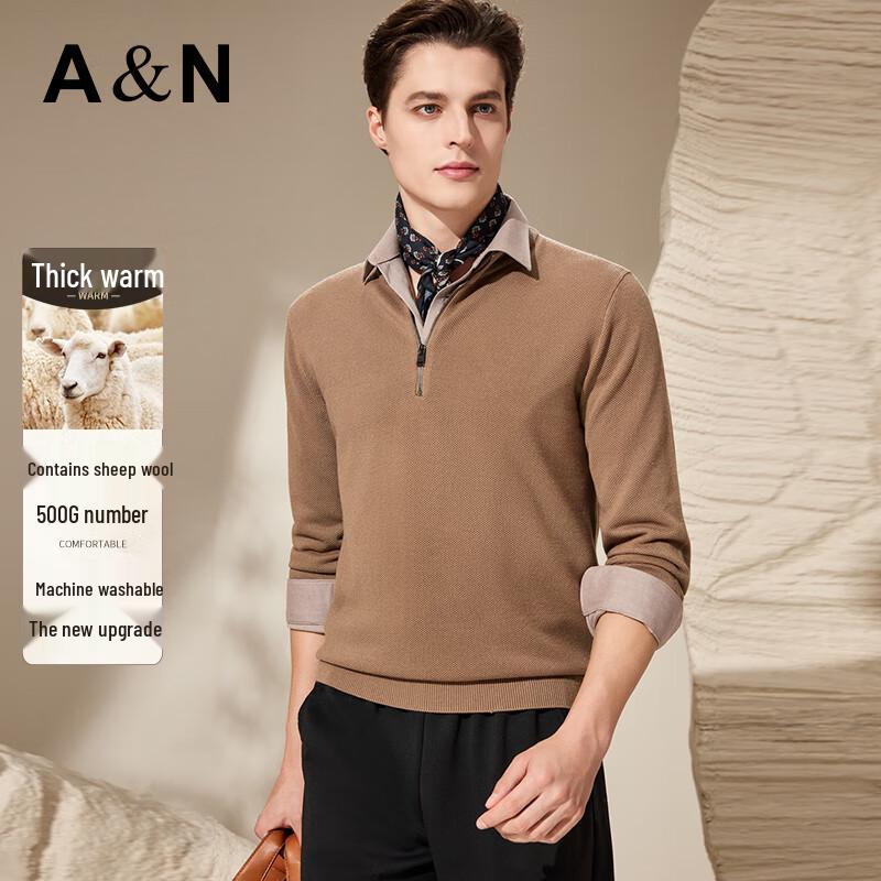 Мужской трикотажный свитер из тонкой шерсти с полузастежкой-молнией