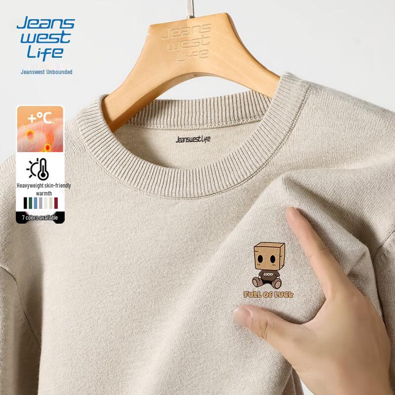 JEANSWEST LIFE Men's Warm JZS Box Doll Print Crew Neck Sweater