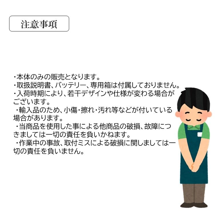 В этом объявлении представлен ударный шуруповерт, совместимый с Makita, с прочным бесщеточным двигателем. Идеально подходит для смены шин, технического обслуживания, сборки мебели и проектов «сделай сам».. Это самый часто используемый электроинструмент. Размер патрона 6,35 мм соответствует японскому внутреннему стандарту. [Характеристики продукта] Размер патрона: 6,35 мм Максимальный крутящий момент: 460 Нм Скорость: 3200 об/мин Переключатель направления вращения Переключатель скорости Высокий/низкий Светодиодная подсветка Функция бесступенчатой регулировки скорости Функция автостопа Совместим с оригинальными 18В приводами Makita: BL1820, BL1830, BL1830B, BL1840, BL1840B, BL1850, BL1850B, BL1860, BL1860B, BL1890, BL1890B, и т.д.. *Свет несовместим. *Зарядное устройство продается отдельно.. [Примечания] *Обратите внимание, что на корпусе могут быть небольшие царапины.
