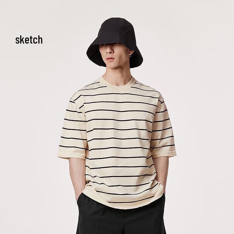 Мужская вязаная футболка с коротким рукавом свободного кроя в полоску CROQUIS