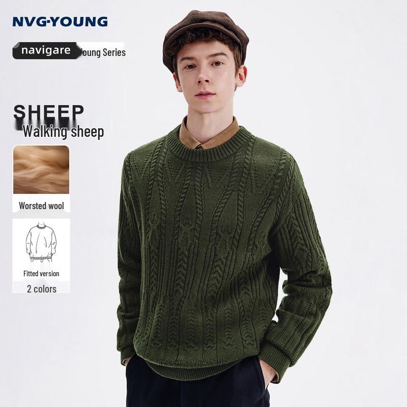 Navigare Men's 2025 Autumn/Winter Round Neck Cable Knit Sweater