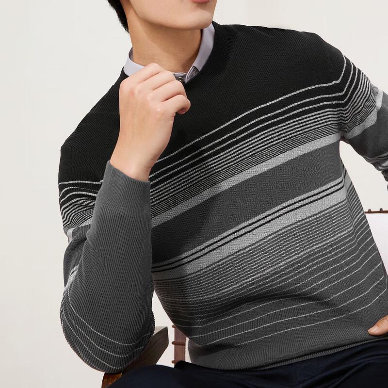 Мужской пуловер Qipai 7A из смесовой шерсти в полоску с антибактериальной полосой