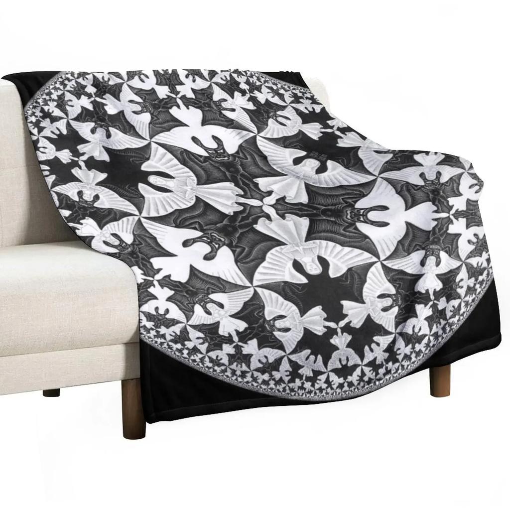 Круговой предел IV (Узор с летучими мышами), Одеяло-плед Маурица Корнелиса Эшера, Одеяло на диван, Лоскутное одеяло на диван#